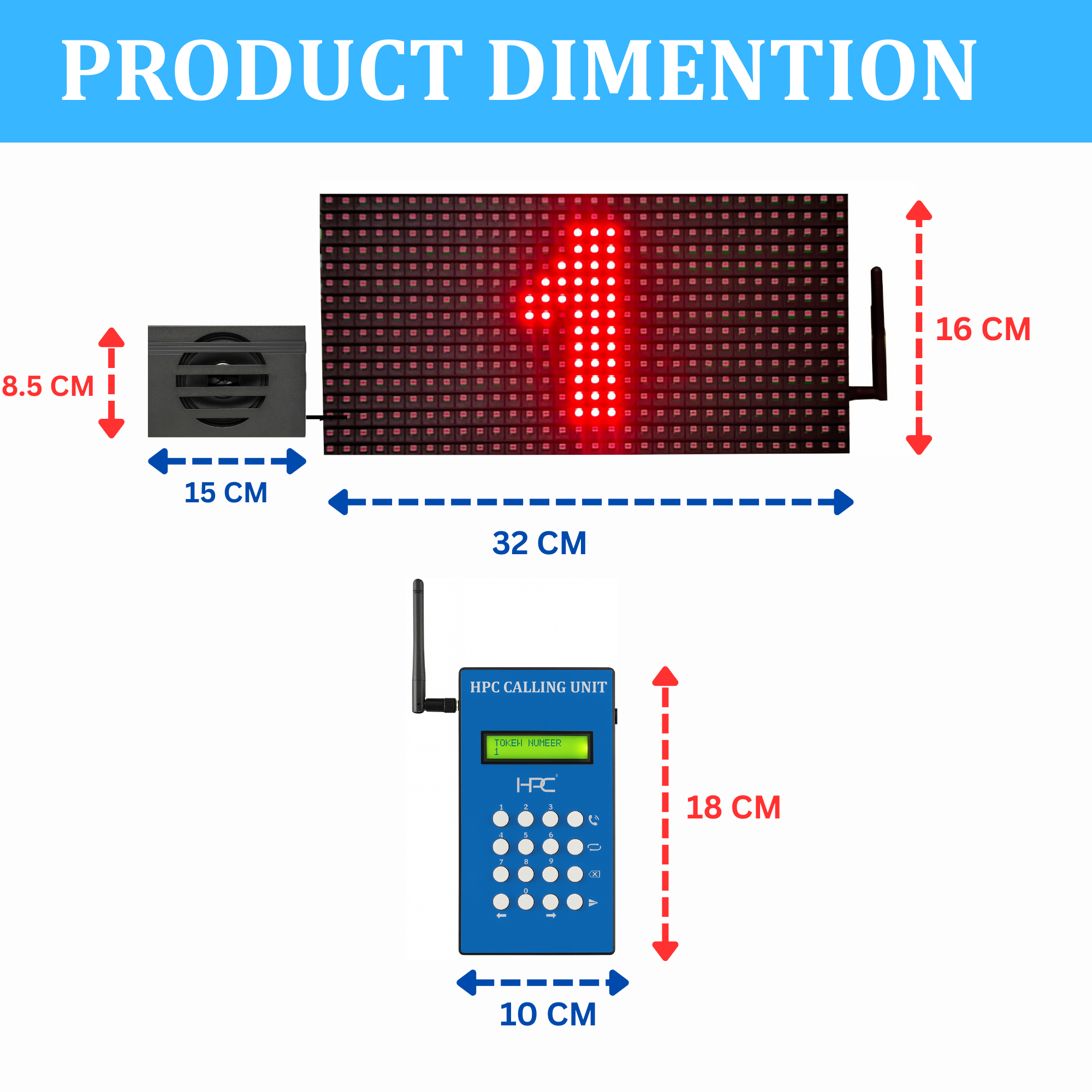 Introducing HPC Wireless Token Calling System or Queue Management Display System for hospital, banks, hotels, service centers, colleges etc. for smart queue management. This system operates on wireless Operation. The Calling Pad unit operated on 9v DC adapter & Display unit operates on 5v DC Adapter. System consist 32 x 16 P10 LED display unit which Clearly visible from 10 meter distance. Calling Pad unit comes with numeric keypad for smooth token number entry. It has around 30 to 50 meter connectivity range for operation. Audience display unit has inbuilt Hindi & English voice system with loud speaker. Unique & user-friendly design. Package contain- 1 Calling Pad Unit, 1 P10 LED Display, 1 Speaker, 2 Adapter, User Manual.