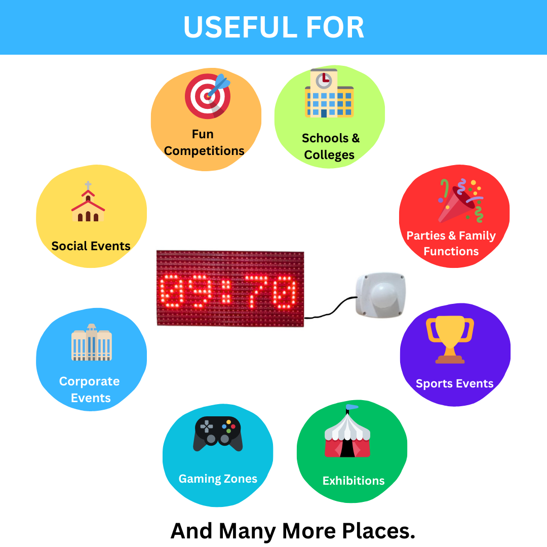 - Fun-Based Counter Game: Set time and challenge participants to stop the counter accurately — great for games, competitions etc.